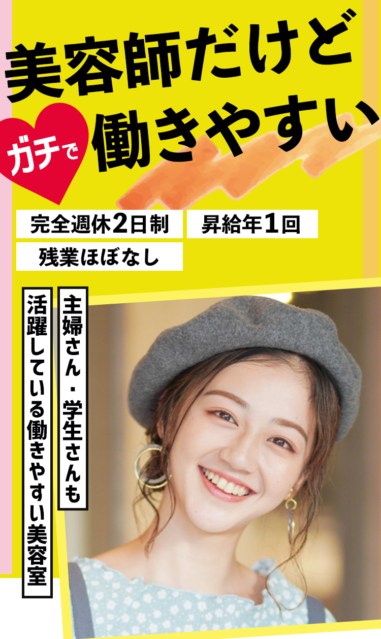 募集要項 ■募集職種 スタイリスト/アシスタント/アシスタント補助■雇用形態 正社員・パート・アルバイト■給与・手当 正社員:月給21万円〜40万円 アルバイト:時給1,170円〜 賞与年2回・昇給あり(半年ごと)・土日祝は時給UP■勤務時間・休日 9:30〜19:00(時短相談OK) 完全週休2日/有給・産休あり■勤務地 東京都昭島市中神町1186-1 メゾンカルム1F■福利厚生 社保完備/交通費支給/レクレーション・旅行あり 会社概要 ◼︎会社名 アニー美容室◼︎所在地 東京都昭島市中神町1186-1 メゾンカルム1F◼︎事業内容 美容業(カット、カラー、パーマなどサロン業務)